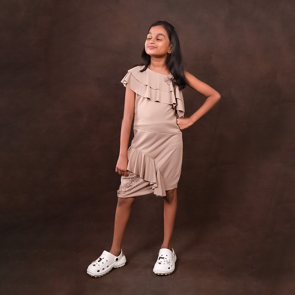 This set designed for Off-shoulder ruffle with layered detailing, paired with a matching layered skirt that adds a delightful twirl. This material Lightweight and breathable, ideal for warm weather. Fabric: spandex blend cotton