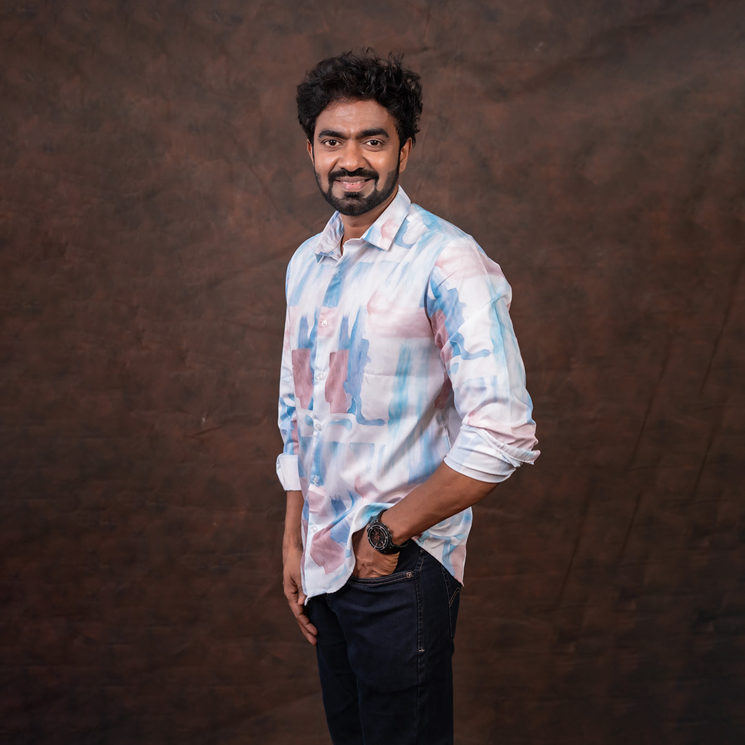 Abstract shirt gives Soft and expressive. This shirt features a unique Colour inspired abstract print in calming blue and blush tones. Perfect for effortless summer style, it combines comfort with artistic flair.